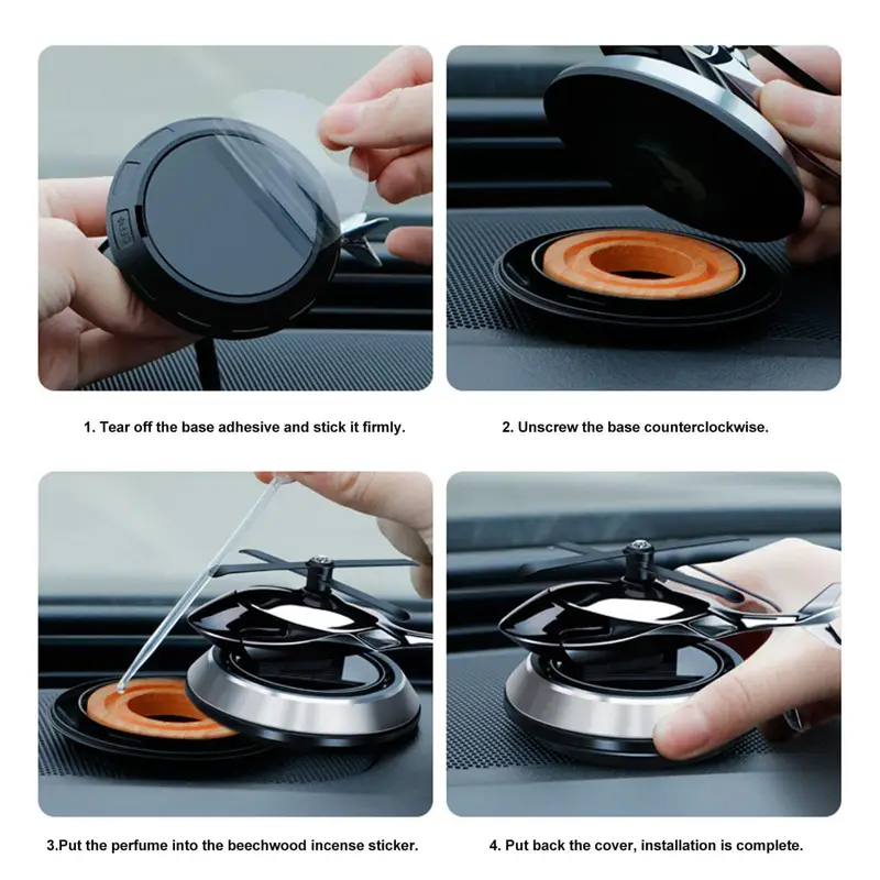 استمتع برائحة منعشة ومستمرة داخل سيارتك، حيث يعمل هذا المعطر بفضل مراوح طائرة الهليكوبتر التي تععمل على الطاقة الشمسية المستدامة.