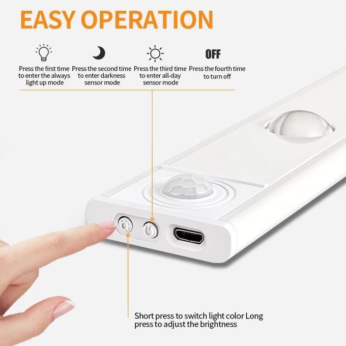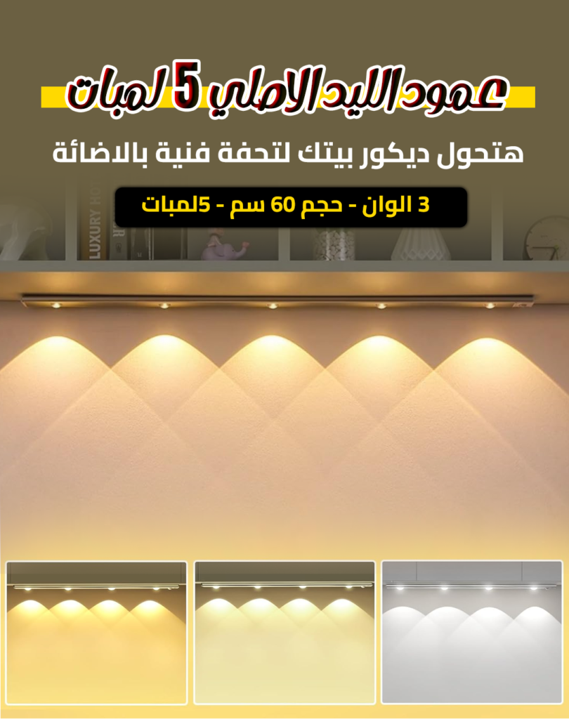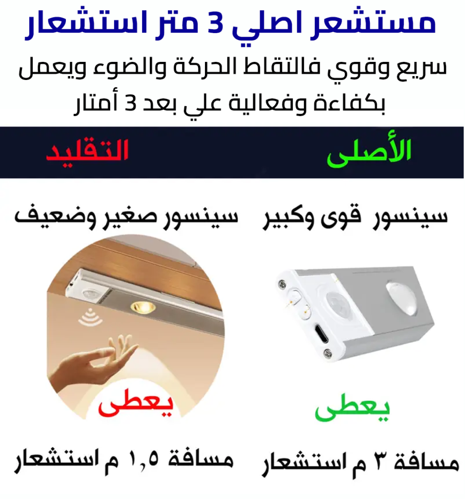 إضاءة ديكورية للمنزل والمطبخ والحمام والنيش والدولايب بتنور 3 الوان ببطارية ليثيوم قابلة للشحن ومزودة بحساس حركة وظلام 💞✅